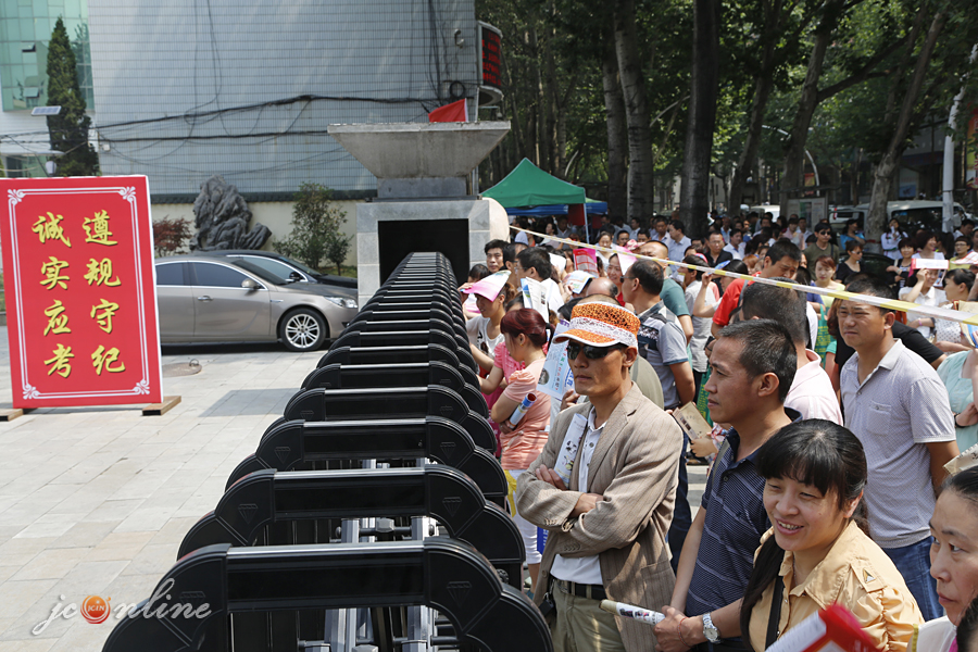 6月22日,上午10时30分,随着英语考试结束的铃声响起,我市2014年中考圆满落下帷幕。在考试结束的最后几分钟,家长们都迫不及待地聚拢围在校门前。(摄影:韩艳帅)